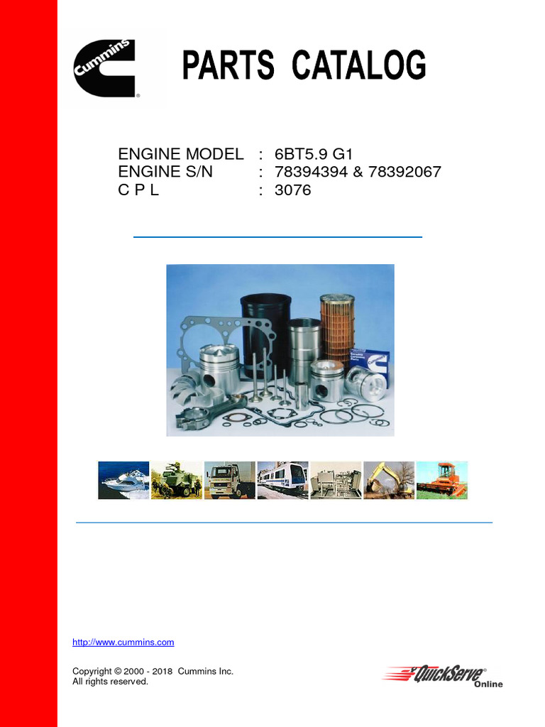 Parts Catalog Cummins (100KVA), 6BT5.9 G1 ESN 78394394 & 78392067