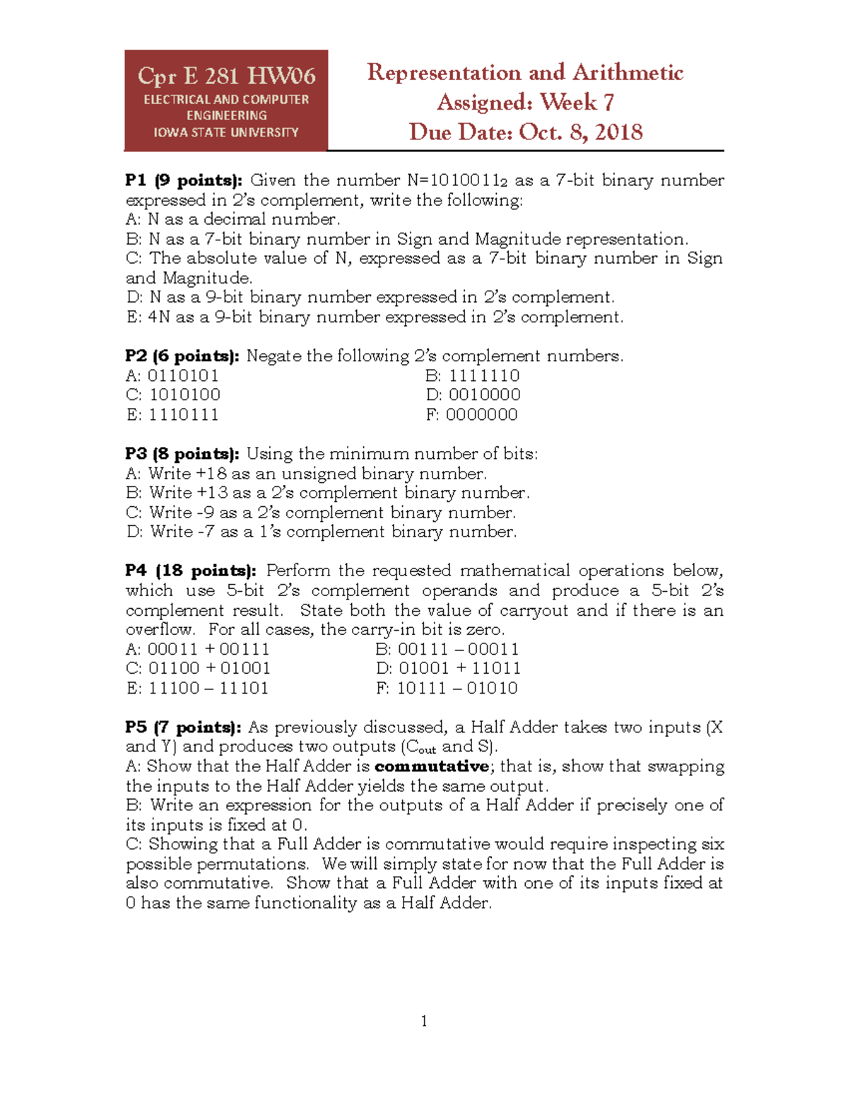 CPRE281 HW06 No des Cpr E 281 HW ELECTRICAL AND COMPUTER