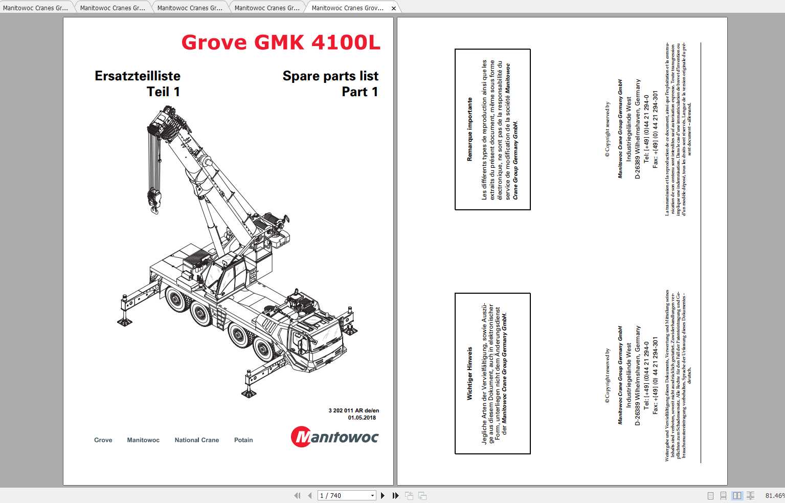 Manitowoc Grove Crane GMK 4100L 3202011AR Spare Parts Catalog