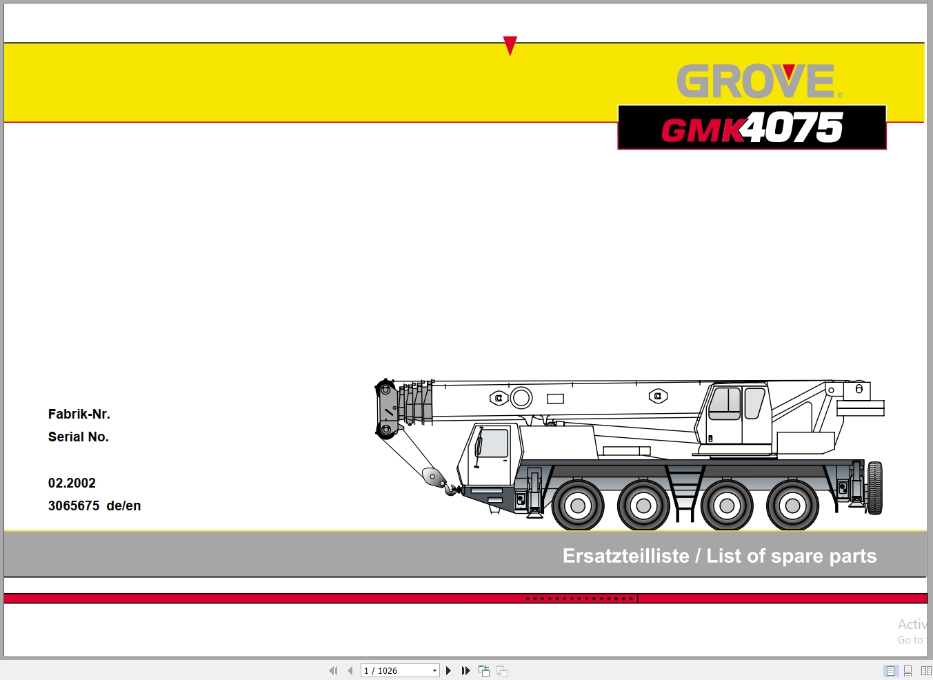 Grove GMK 4075 Crane Parts Catalog 3065675 2002 PDF