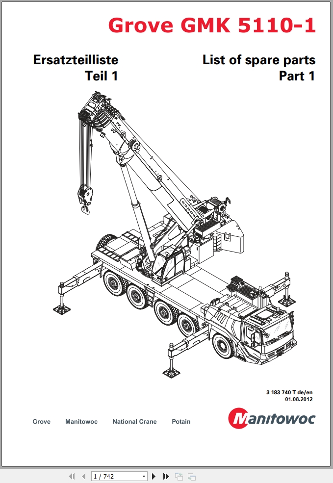 Grove GMK 51101 Crane Parts Catalog 3183740T 2012 PDF