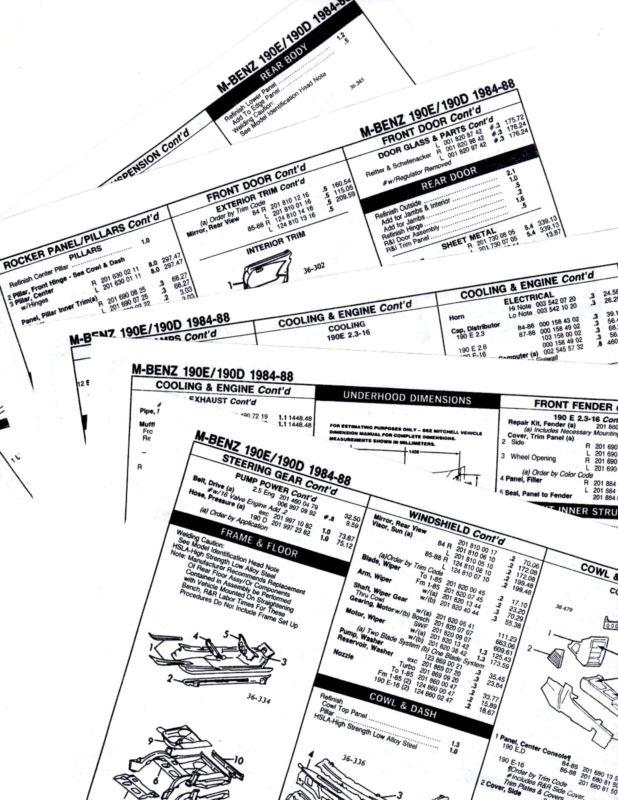 Buy 1984 1985 1986 1987 1988 MERCEDES 190E 190D BODY PARTS LIST CRASH