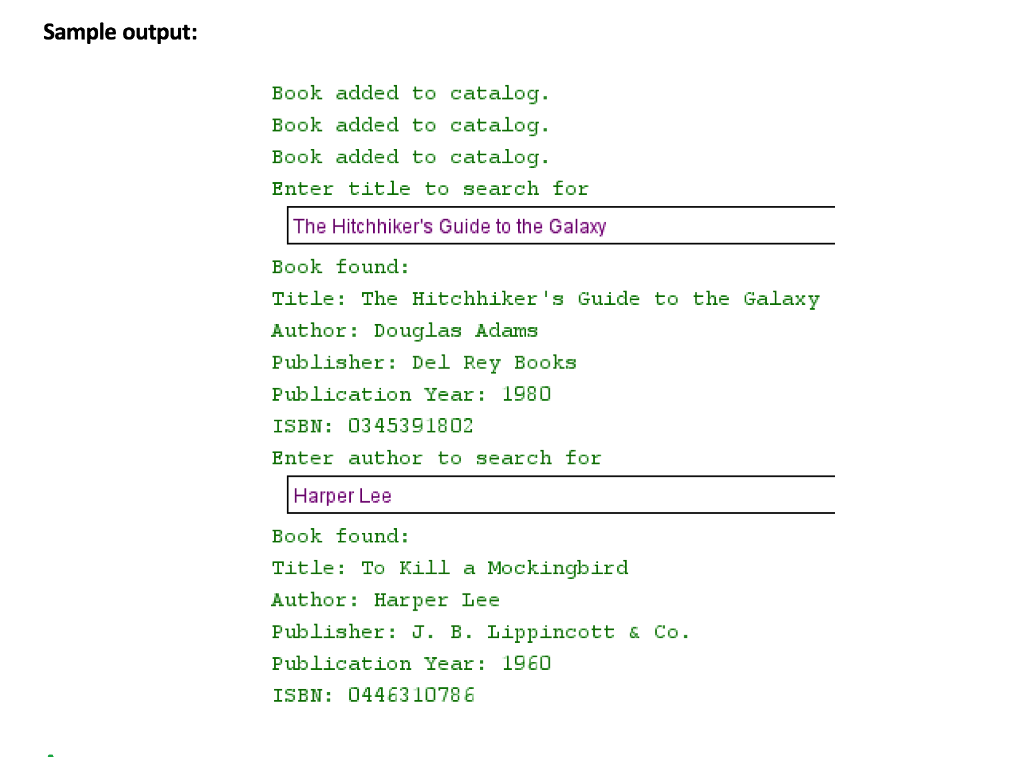 In Java You want to manage a library catalog that
