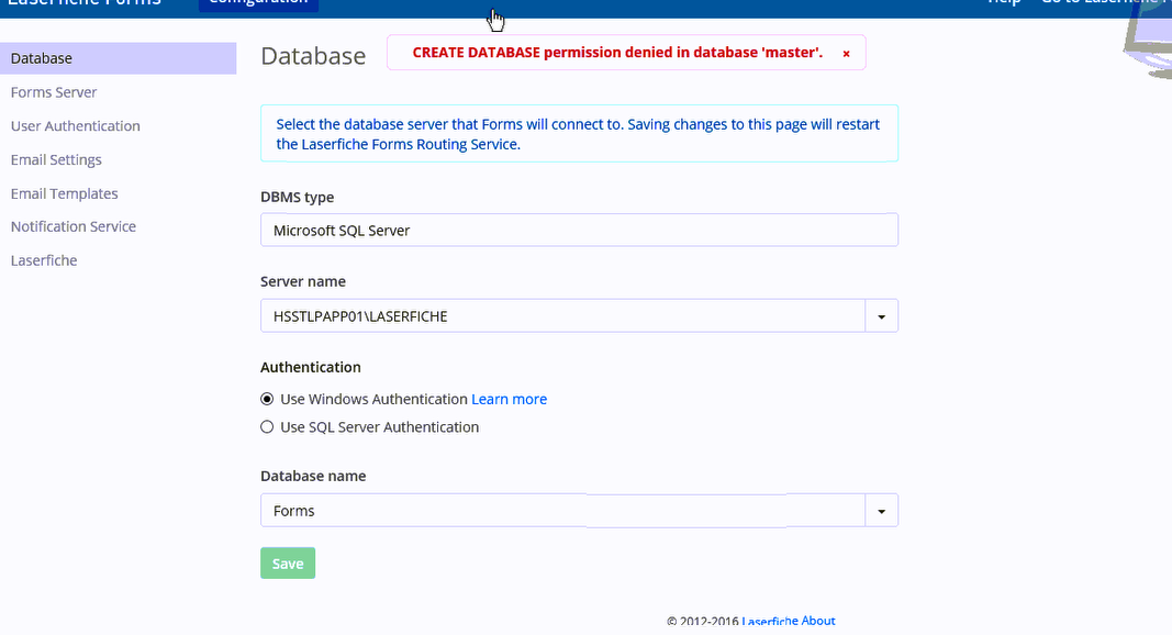 Databases CREATE DATABASE permission denied in database 'master