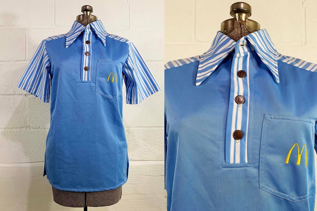 Vintage McDonald’s Uniform Shirt 1976 Crest 1970s Baby Blue White Fast