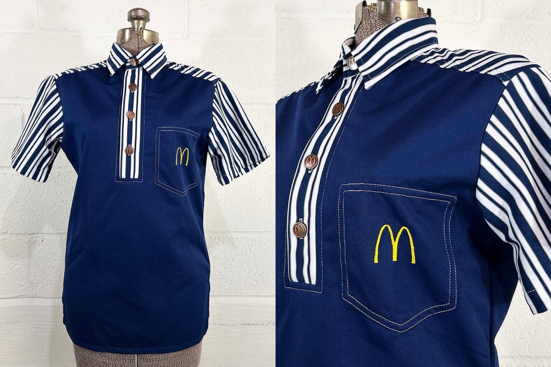 Vintage 1976 McDonald's Uniform Shirt Navy Blue Crest, Size Small