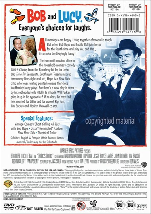 CRITIC'S CHOICE 1963 LUCILLE BALL RARE DVD