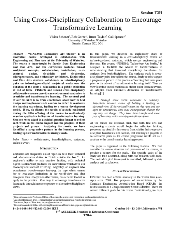 (PDF) Using crossdisciplinary collaboration to encourage