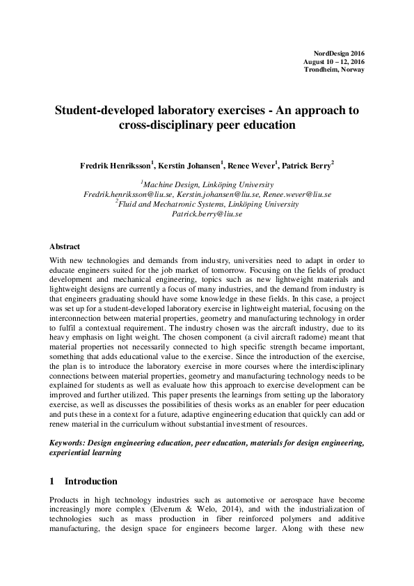 (PDF) Studentdeveloped laboratory exercises An approach to cross