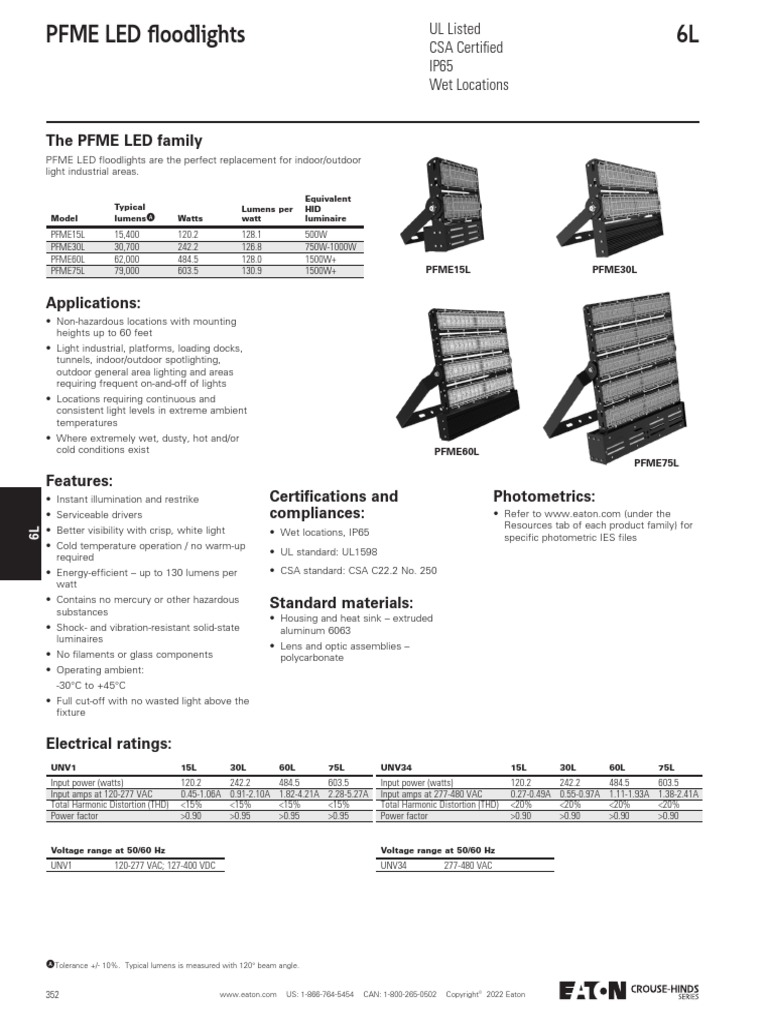 Crouse Hinds Pfme Led Floodlight Catalog Page PDF