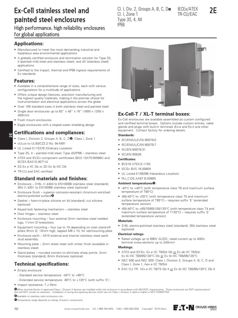 Crouse Hinds Ex Cell Enclosures Catalog Page PDF Stainless Steel