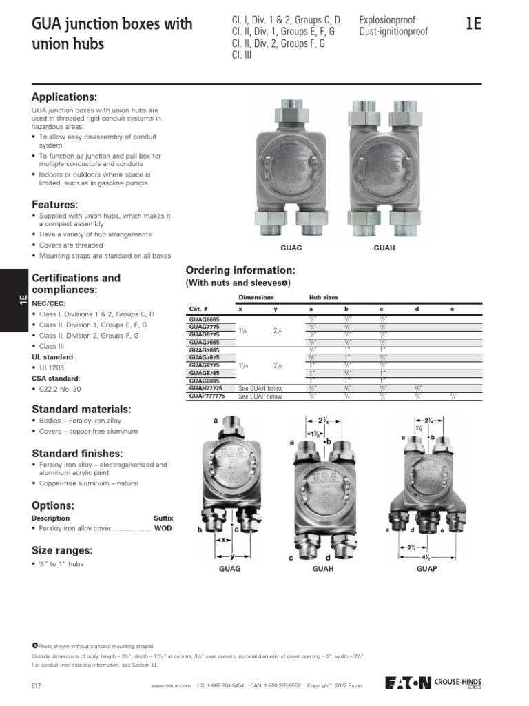 Crouse Hinds Gua Junction Box Union Hub Catalog Page PDF