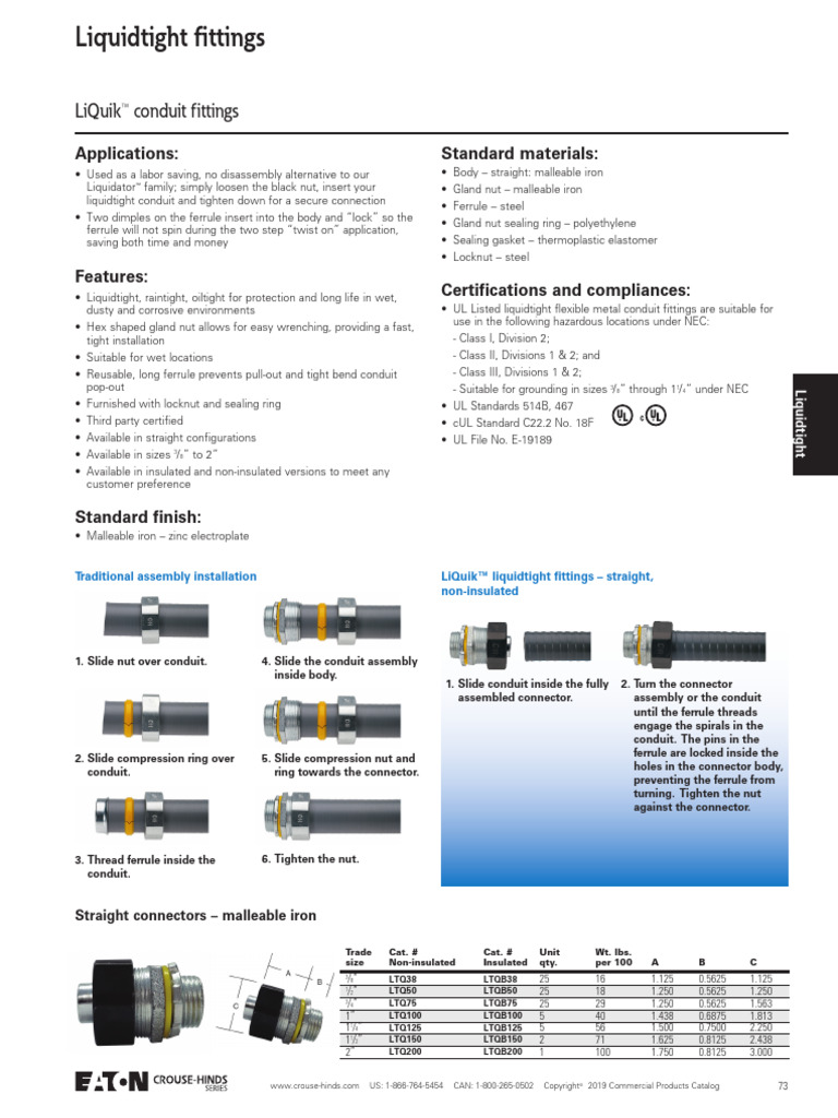 Crouse Hinds Liquik Liquidtight Fittings Catalog Page PDF Building