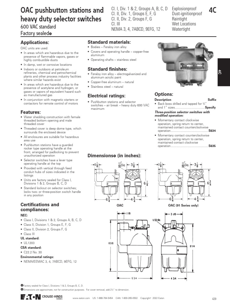 Crouse Hinds Oac Pushbutton Selector Switch Control Station Catalog