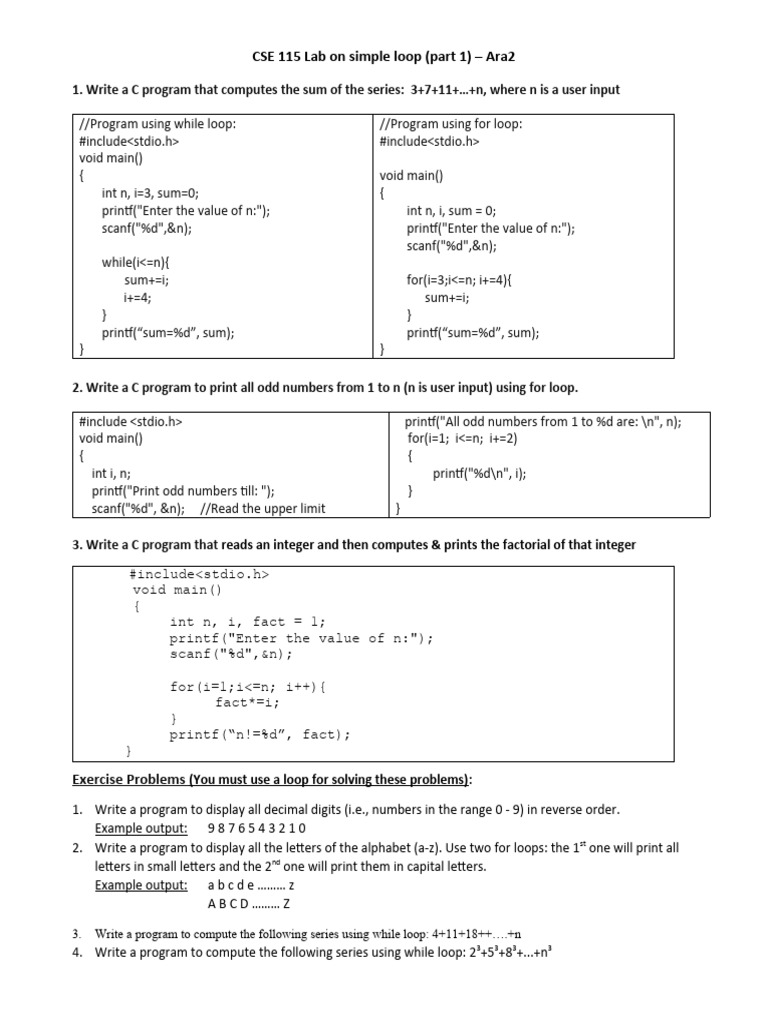 Cse115 Lab Manual 6 Simple Loop Part1 PDF Computer Programming