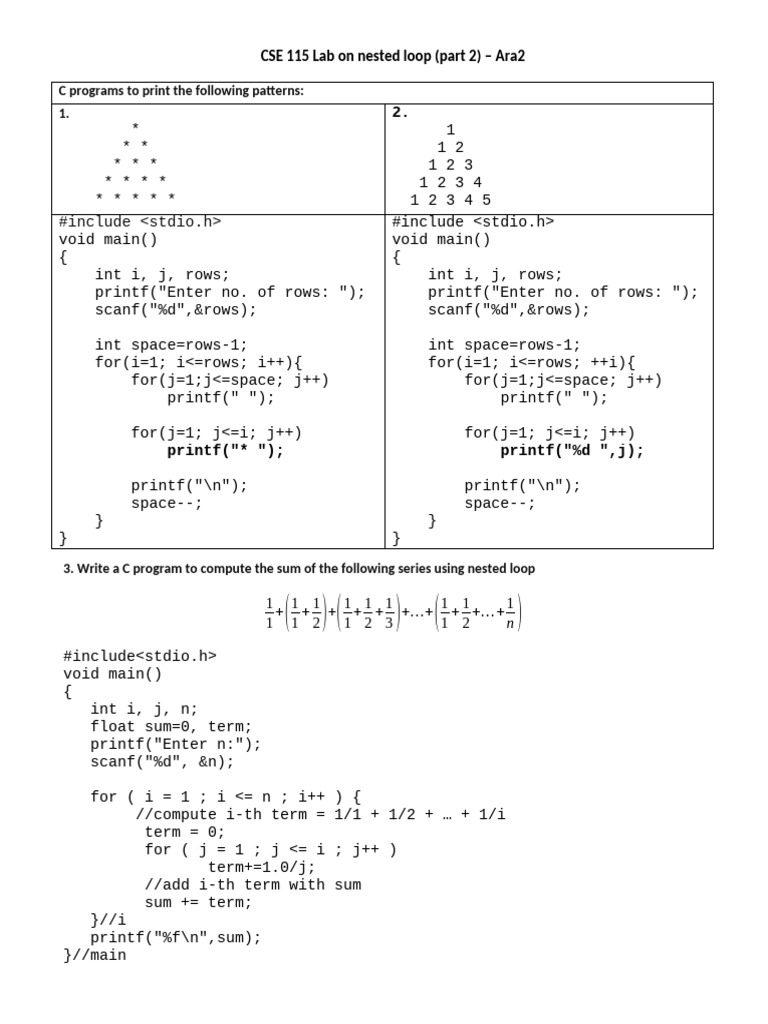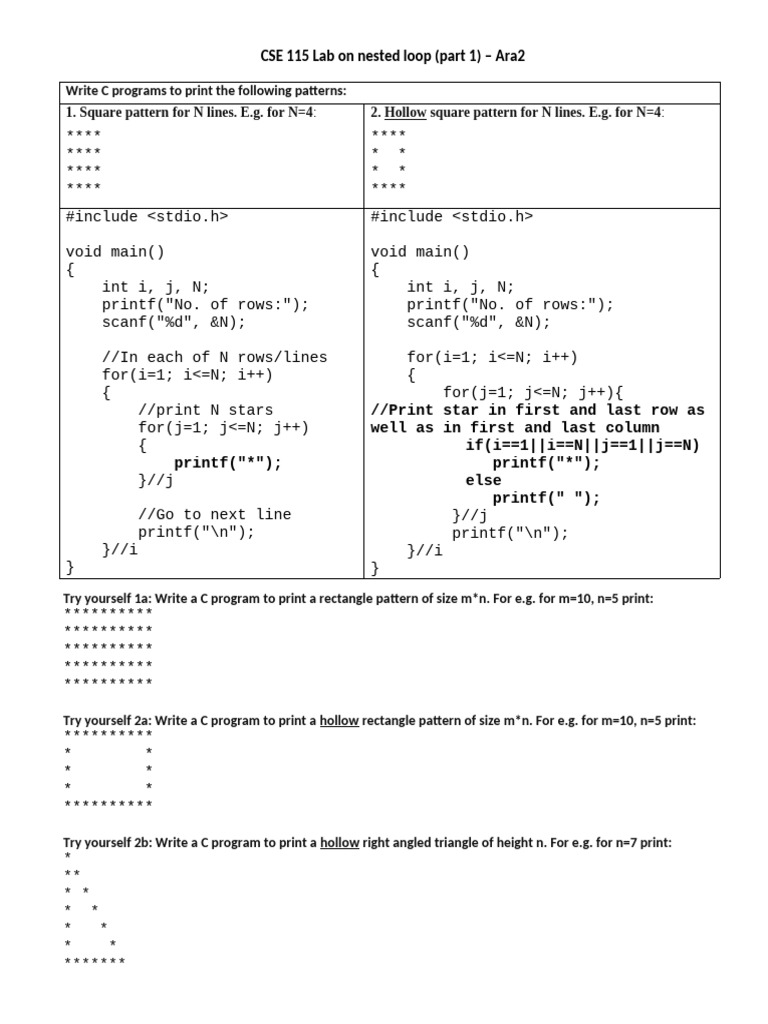 Cse115 Lab Manual 10 Nested Loop Part2 PDF Computer Libraries