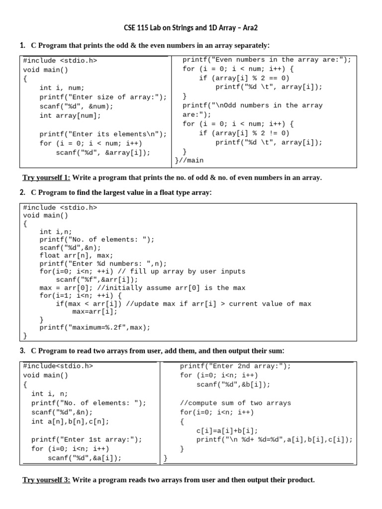 Cse115 Lab Manual 14 1D Array PDF String Science