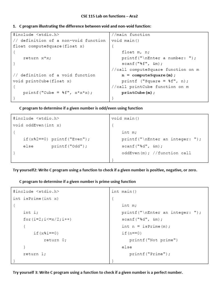 Cse115 Lab Manual 12 Function PDF Integer Science