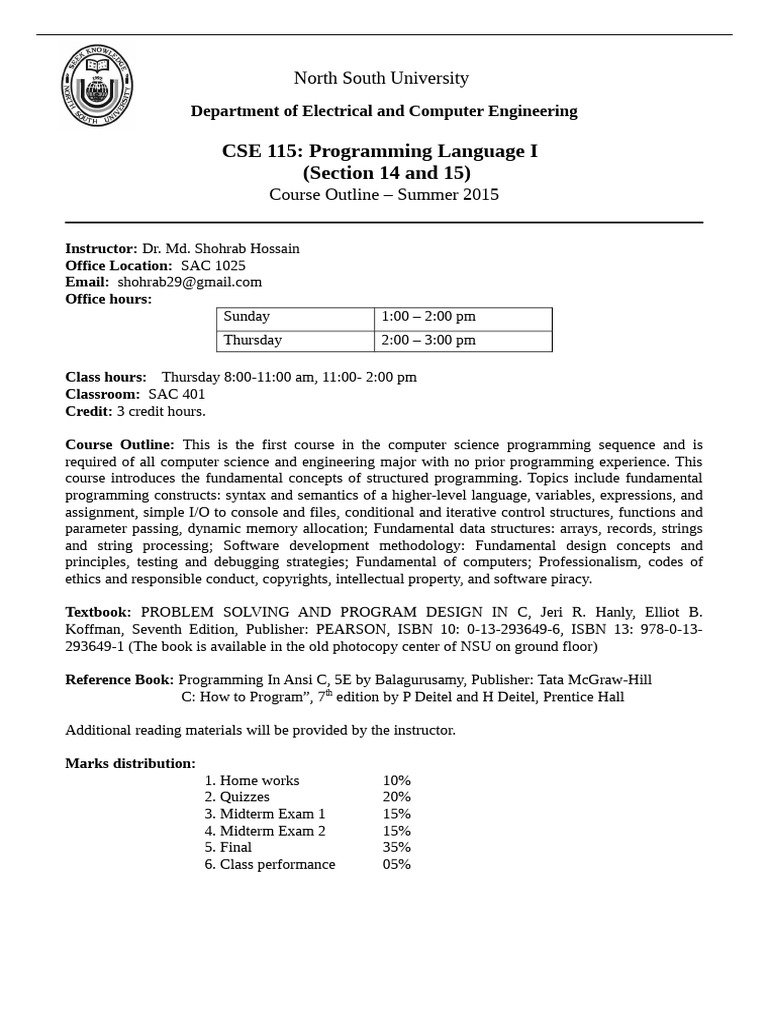CSE115 Outline North South University Department of Electrical and