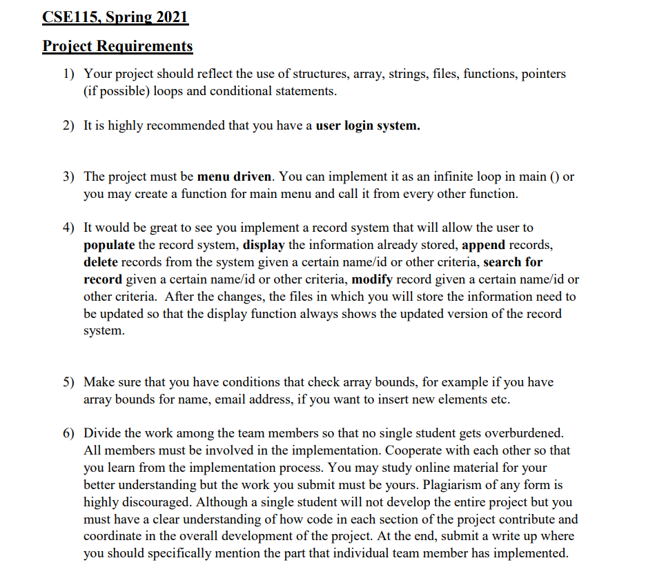 Solved CSE115, Spring 2021 Project Requirements 1) Your