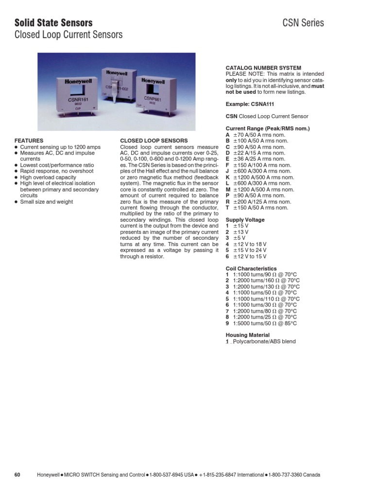 Honeywell CSN Series Solid State Closed Loop Current Sensors Catalog