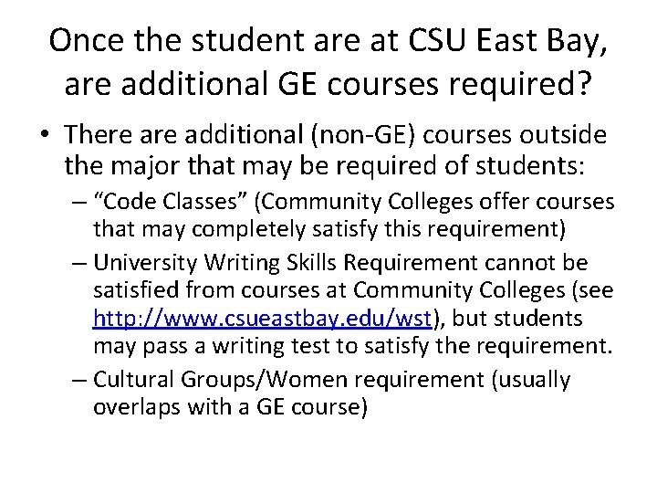 Transfer Students CSU East Bay Modern Campus Catalog™