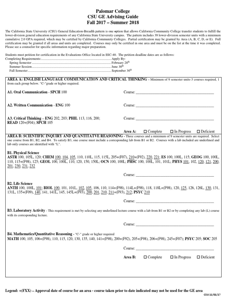 A Guide to Fulfilling CSU General Education Requirements Courses
