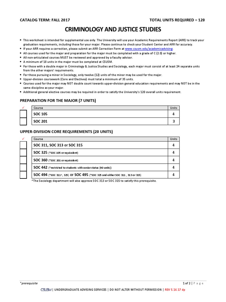 Criminology and Justice Studies Catalog Term Fall 2017 Total Units