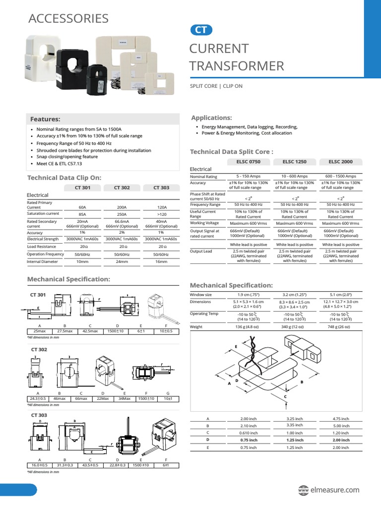 Elmeasure Split Core CT Catalog PDF Amplifier Hertz