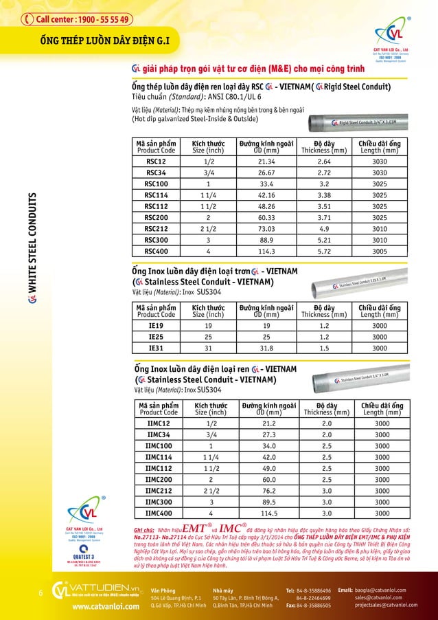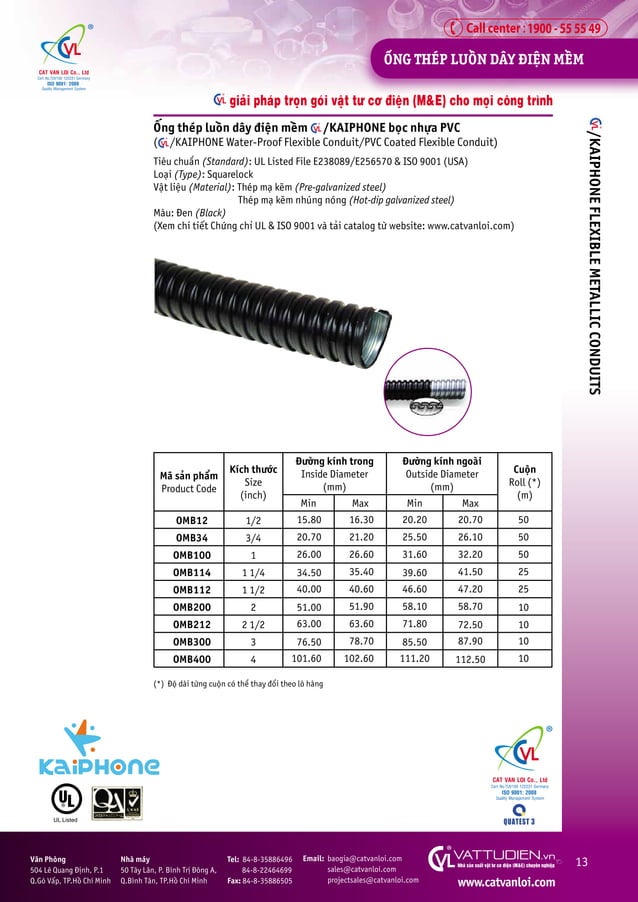 Catalogue CTY Thiết Bị Điện Cát Vạn Lợi Ống luồn dây điện Ống ruột
