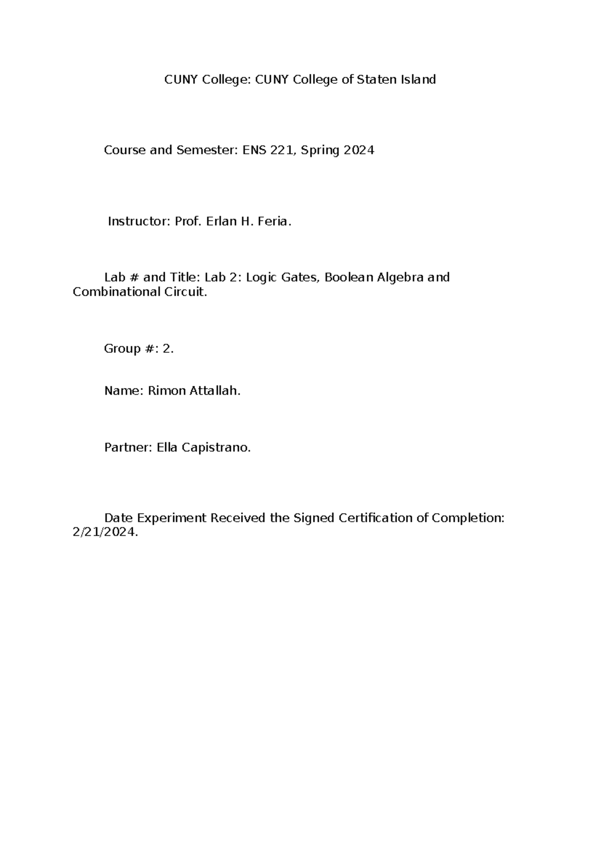 ENS 221 lab 2 report CUNY College CUNY College of Staten Island