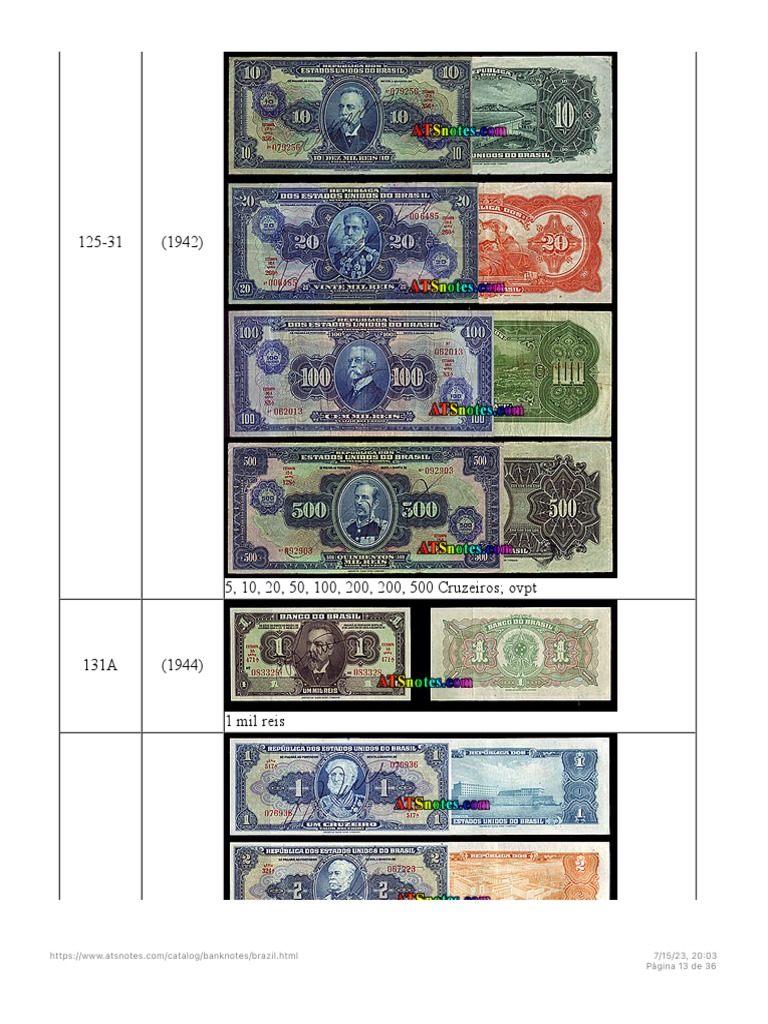 Brazil Banknotes Brazil Paper Money Catalog and Brazilian Currency