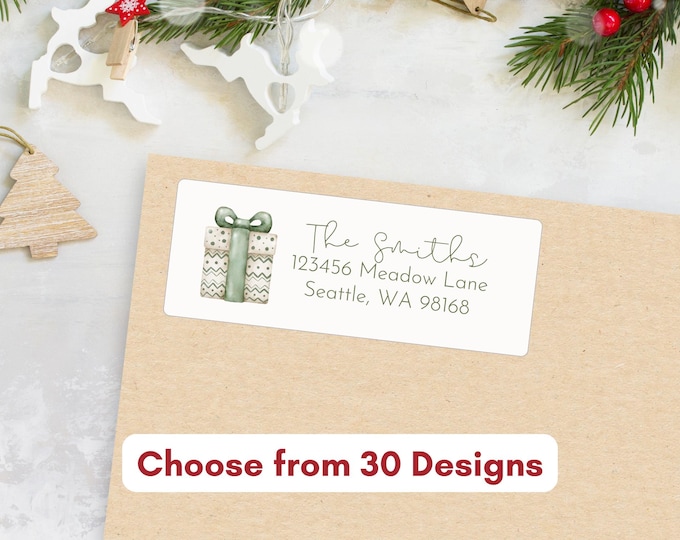 Personalized Christmas Theme Return Address Labels for Holiday Envelop