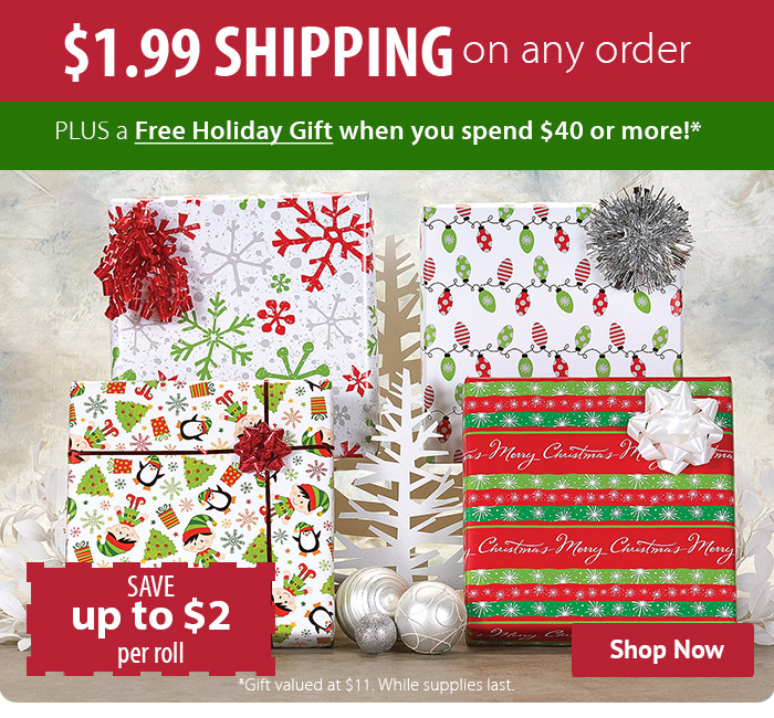 Current Catalog Festive Christmas wrap ships for 1.99 (plus a free