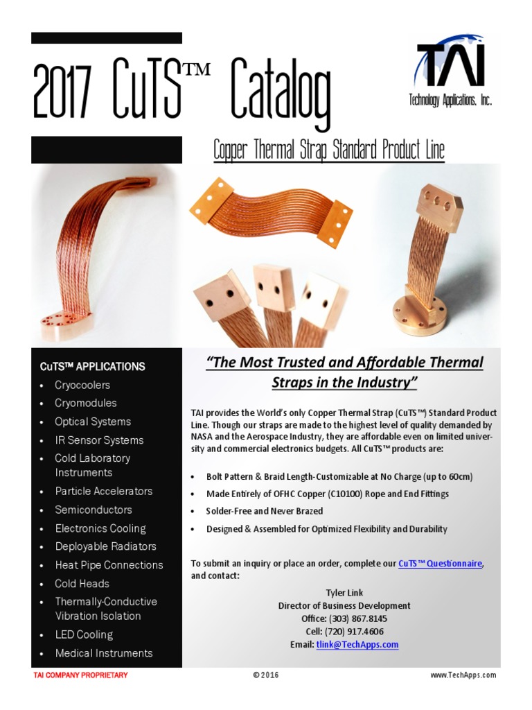 TAI Releases the 2022 Copper Thermal Strap (CuTS®) Catalog SpaceQuip