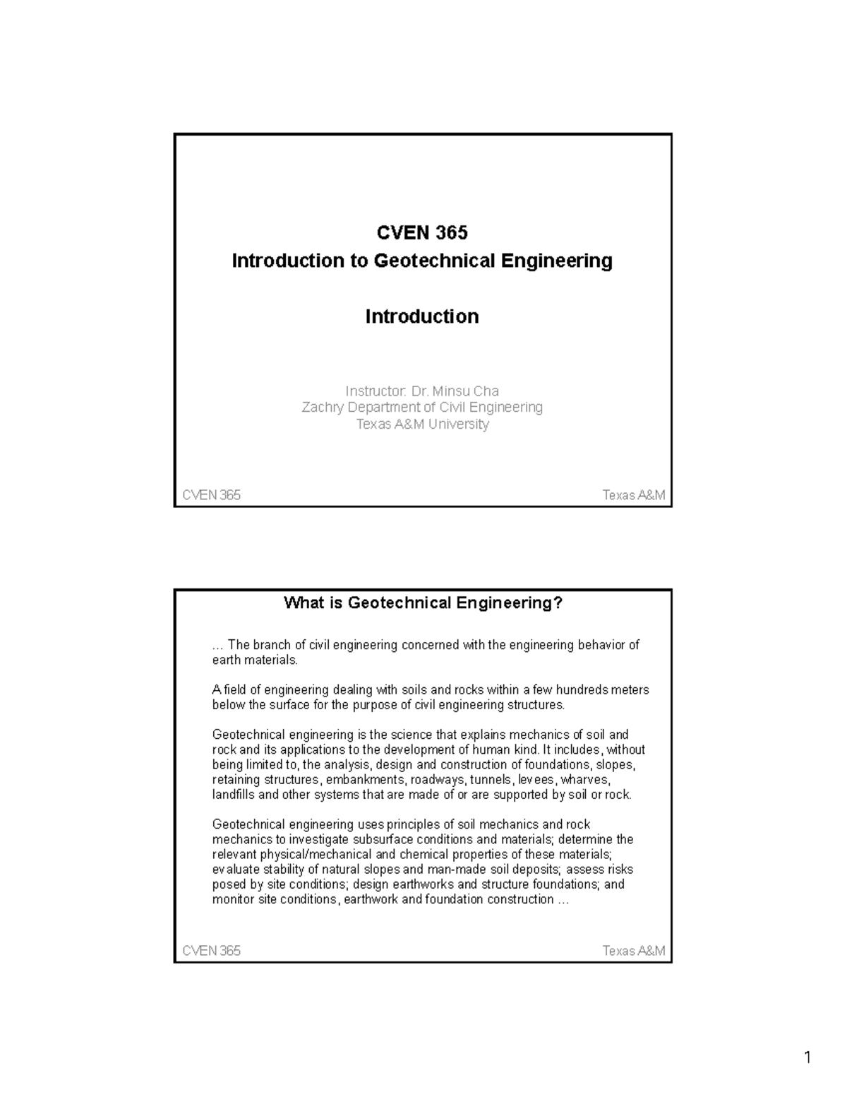 CVEN365 Fall 2018 1 Introduction CVEN 365 Texas A&M CVEN 365