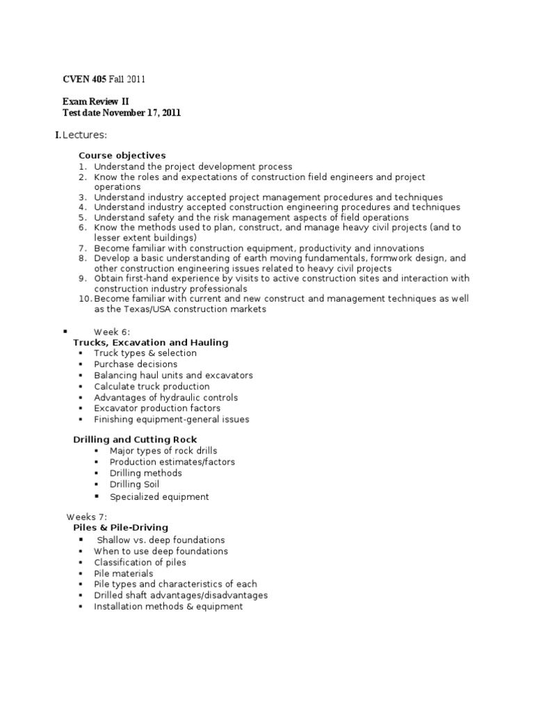 CVEN 405 Exam II Review Fall 11 PDF Deep Foundation Concrete