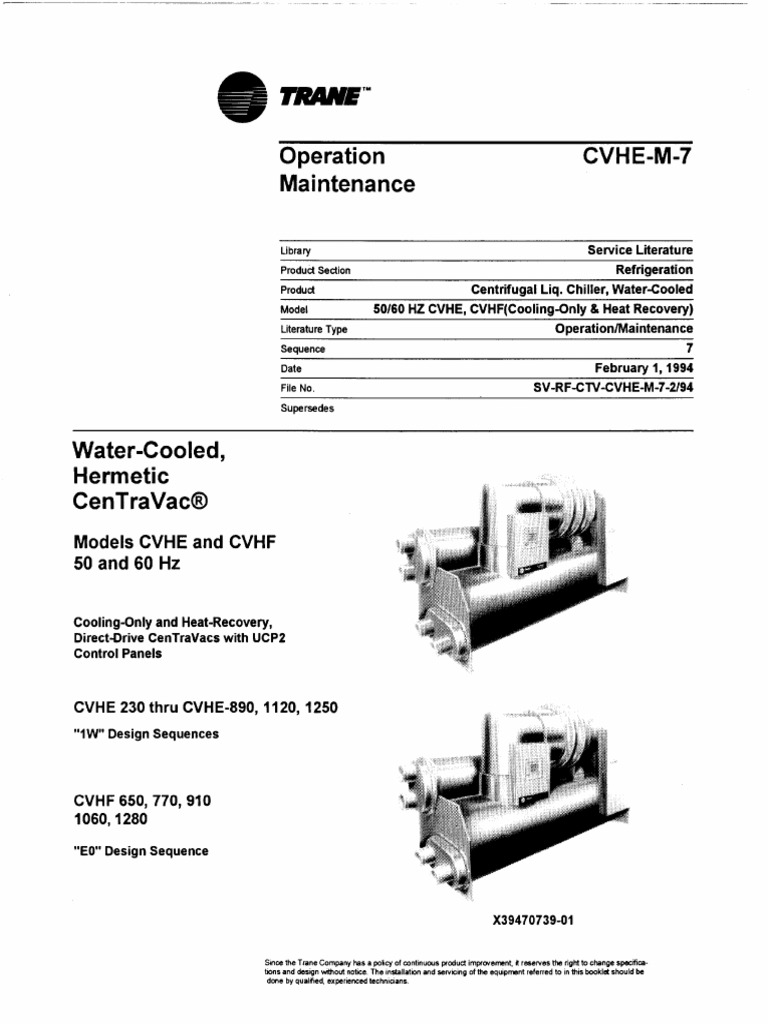 TRANE CVHE CenTraVac WaterCooled Chillers Installation Guide