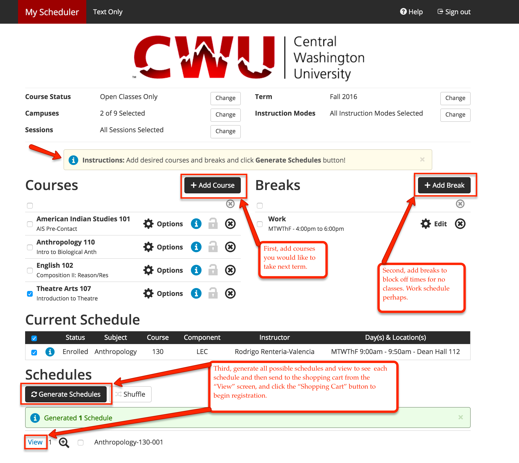 MyCWU Scheduler Central Washington University Modern Campus Catalog™