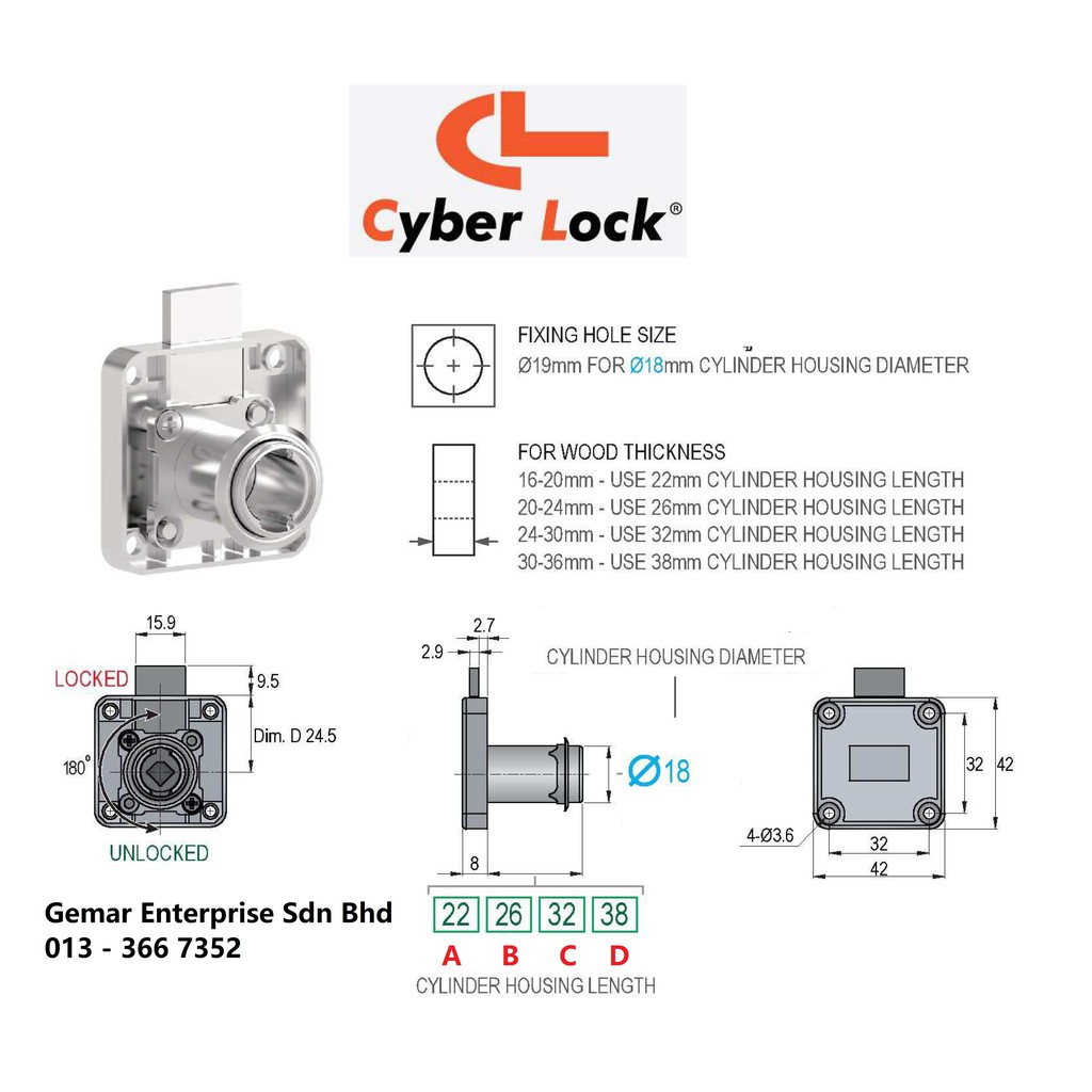 CyberLock Premium Square Lock 22mm/26mm/32mm/38mm (READY STOCK
