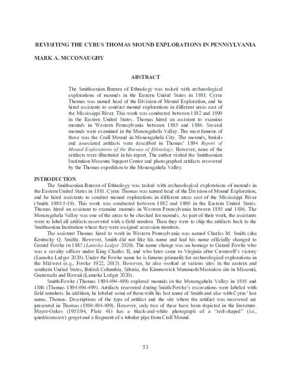 (PDF) REVISITING THE CYRUS THOMAS MOUND EXPLORATIONS IN PENNSYLVANIA