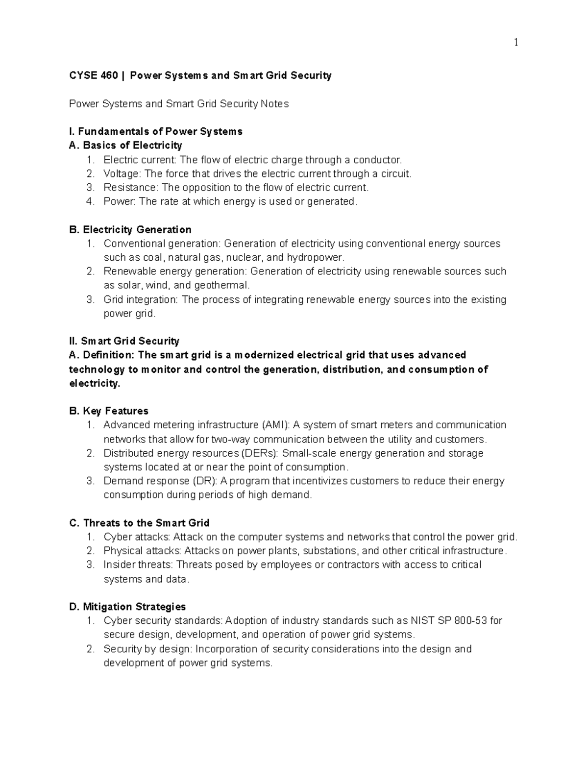 CYSE 460 Power Systems and Smart Grid Security CYSE 460 Power