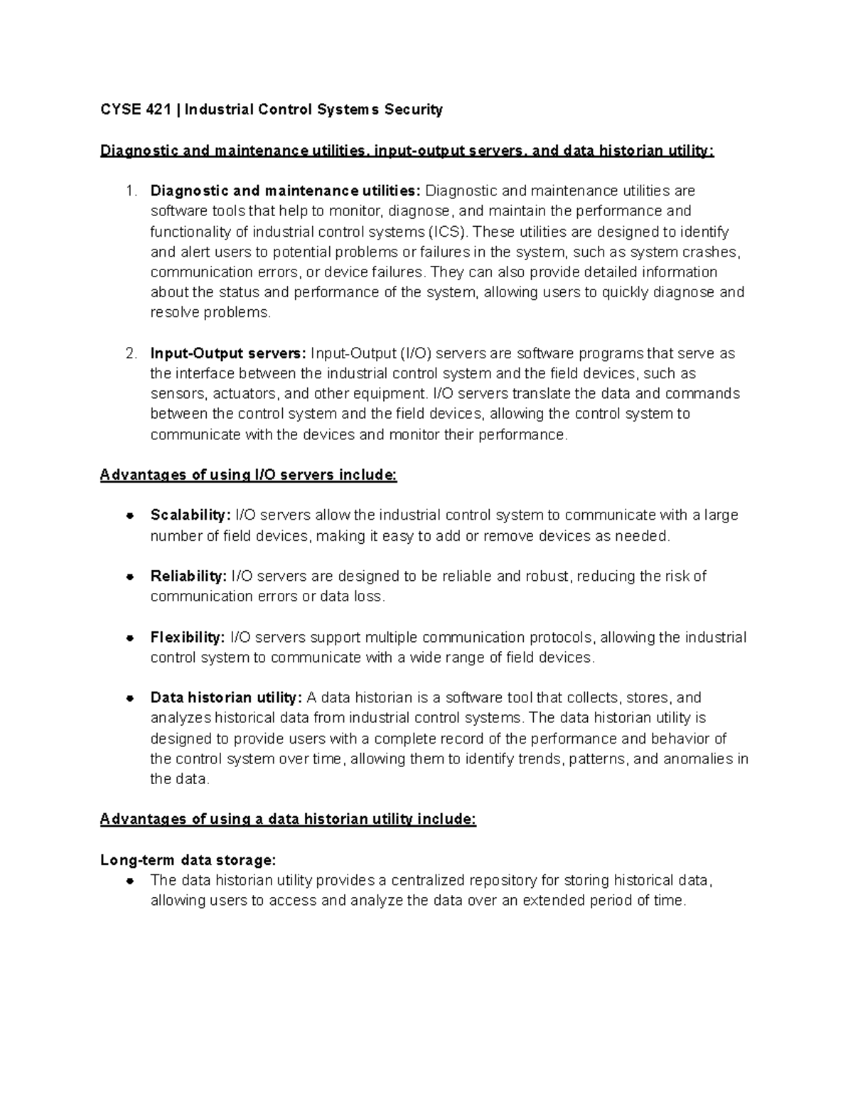 CYSE 421 ICS Security notes CYSE 421 Industrial Control Systems