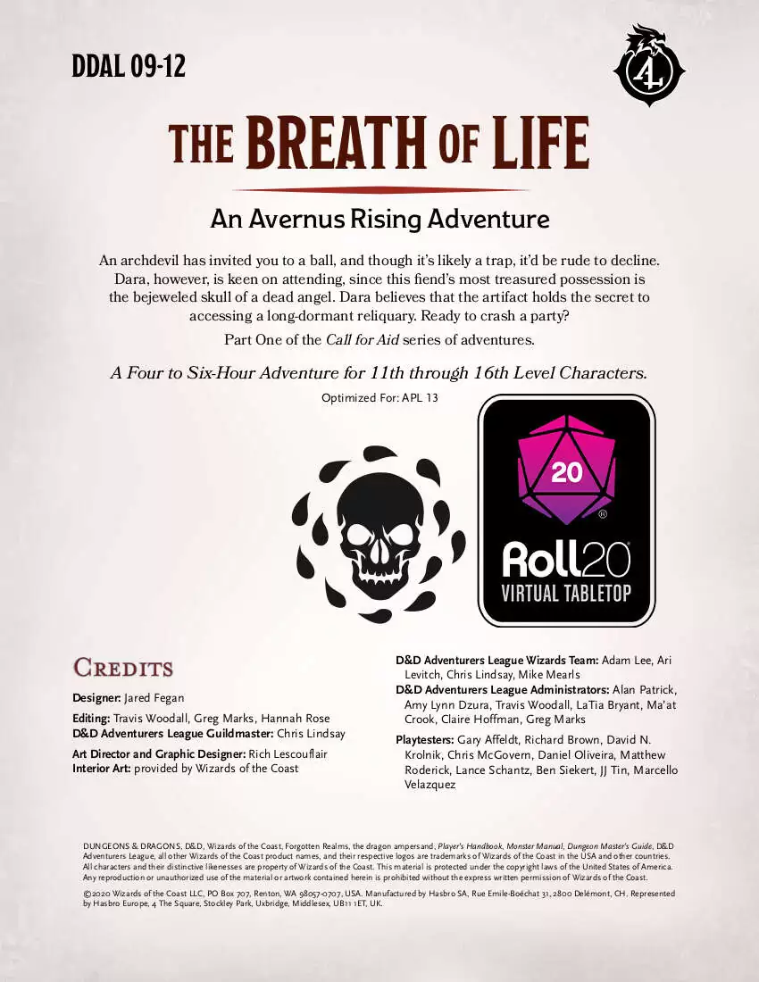 DDAL0912 The Breath of Life Roll20 D&D Adventurers League