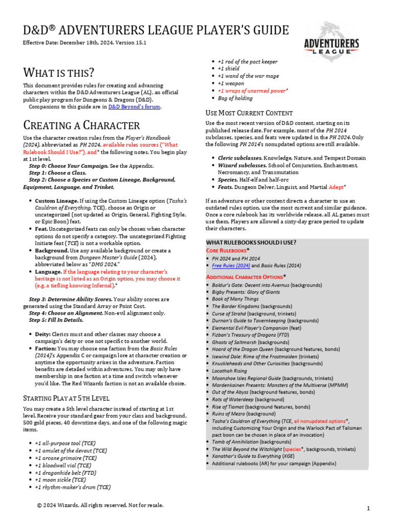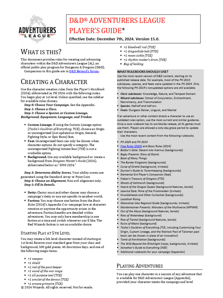 D&D Adventurers League Players Guide v15.1 PDF Dungeons & Dragons