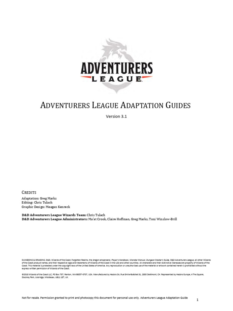 D&D Adventurers League Adaptation Guides v3.1 PDF Dungeons