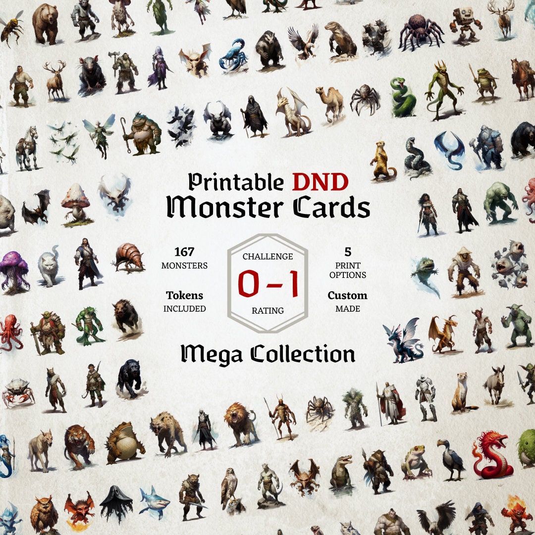D&D Monster Cards, Challenge 0 to 1, Mega Collection, Tokens, Foldable