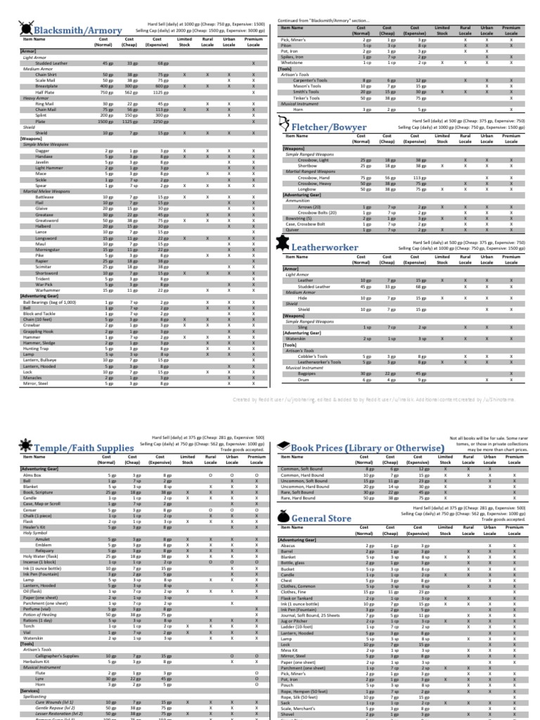Updated & more inclusive 5E D&D Shops Catalog (V2.0.1) DnD5e