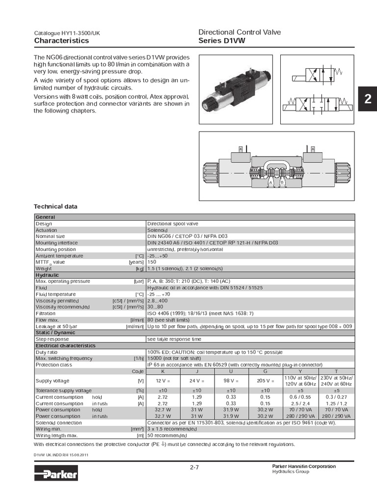 Parker Valvula D1VW PDF PDF Valve Electrical Connector