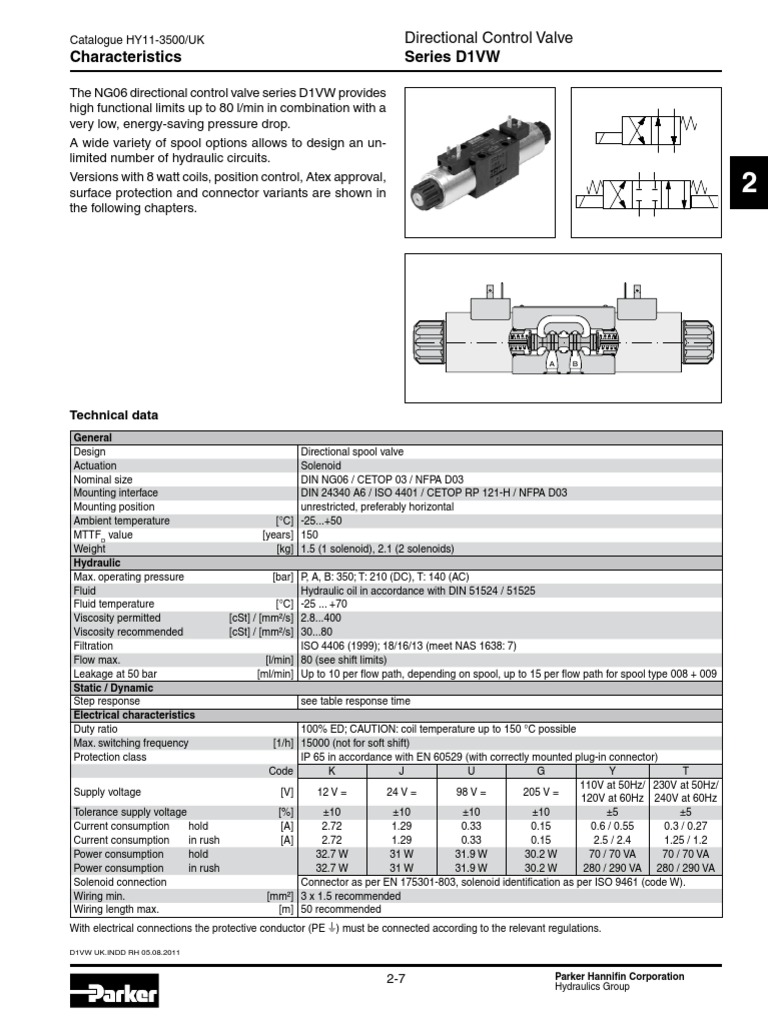 D1VW Directional Control Valves Technical Overview PDF Alternating